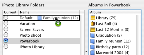 - Due to technical limitations with iPhoto 6 and earlier, if you drag a folder of albums from one library to another, the folder and its hierarchy will not be recreated in the destination library, only the albums contained inside the folder. However, if you are using iPhoto 7, the album hierarchy will be preserved correctly when copying.